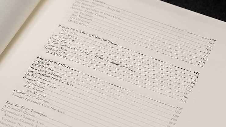 Inside you'll find eleven chapters covering a range of topics, ranging from overhand shuffle work, prepared effects, controls, and updated classics, to more esoteric ideas like Clock routines, faro systems, and more.