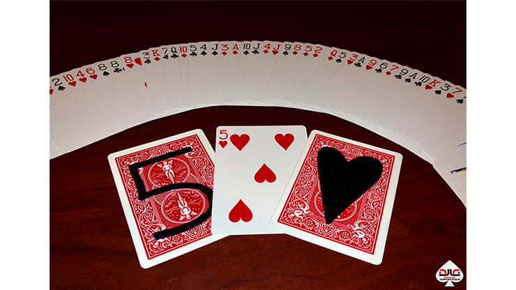 The Jokers are given to a spectator to hold, then a card is selected. This chosen card is now shuffled and lost in the deck. The cards are spread face down and the spectator inserts the face up Jokers around any card, sandwiching and isolating it from the rest. This mystery card is now turned over and incredibly it is their selected card! The effect could end here, but in an unexpected finale, the face up Jokers are turned over to reveal a jaw-dropping prediction on their backs!