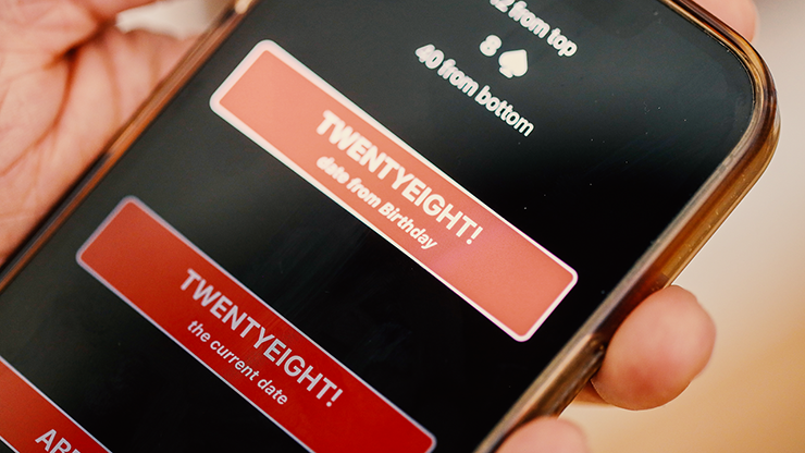 MAXIM je skrytá aplikace, která okamžitě vypočítává a diskrétně vám poskytuje dokonalé odkrytí jakékoli volně pojmenované karty v balíčku, který byl smíchán diváky.