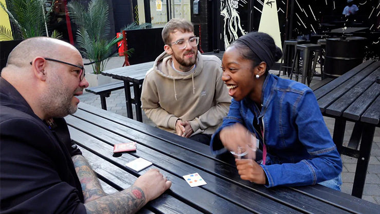 Karty postupně procházíte a vyzýváte diváka, aby kdykoli zakřičel "STOP!". Udělá to a vy odhalíte přesnou směs, kterou vytvořil. Stačí jedna karta dříve nebo později a výsledek by byl úplně jiný, ale jejich volba je 100% svobodná. I přes tuto volnost však odhalíte, že jste jejich jedinečný mix předem dokonale předpověděli!"