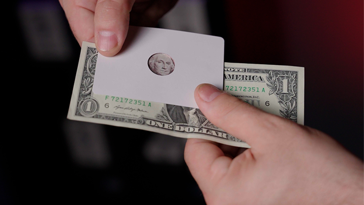 Karta DOLAROVÁ ÚČTOVNICE se položí na DOLAROVOU ÚČTOVNICI, na které je zobrazena tvář George Washingtona. Bez jakýchkoli pohybů posuňte hlavu Georgese nahoru k horní části bankovky, pak napříč doprava a pak doleva. Nakonec posunete jeho hlavu zpět na ramena, kam patří. Okamžitě vrátíte vypůjčenou bankovku a ukážete kartu z obou stran.